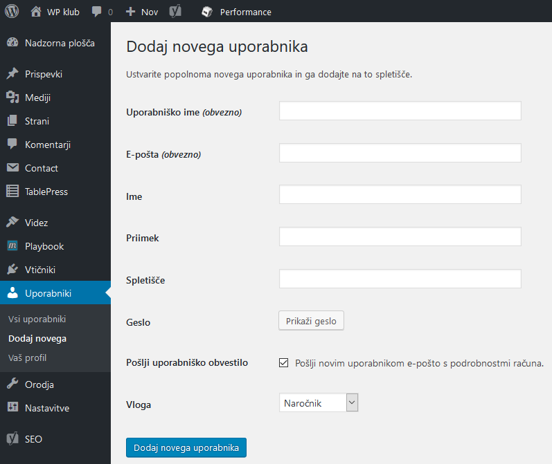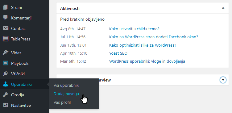 Kako v WordPress dodati novega uporabnika?